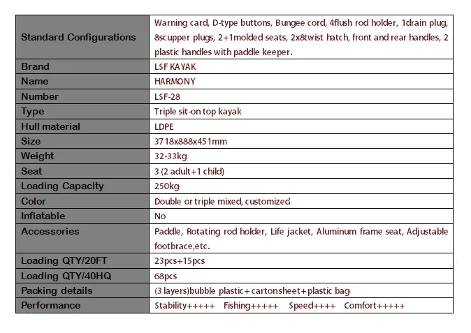 Packing Details : bubble bag+carton sheet+plastic bag , three layers strong package to prevent the kayak from damage in transport.
